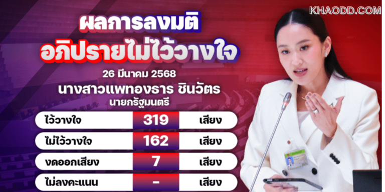 แรงสะเทือนการเมือง: สภามีมติไว้วางใจ “แพทองธาร” เป็นนายกรัฐมนตรีต่อ