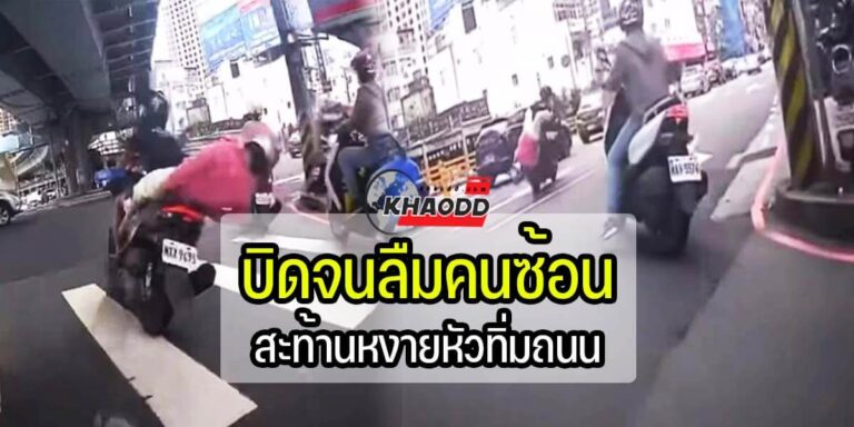 เปิดนาทีระทึก บิดจนลืมคนซ้อน หงายหลังหัวทิ่มพื้นถนน เกือบโดนรถทับซ้ำ!!