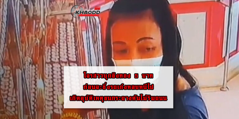 โจรสาวบุกชิงทอง 5 บาท ซิ่งรถเก๋งหลบหนีไปเกิดอุบัติเหตุ ขโมยรถจักรยานยนต์ คนที่มาช่วยหลบหนีไป