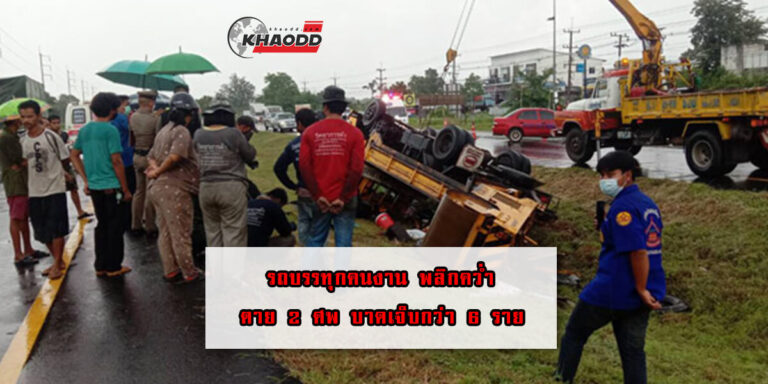 รถบรรทุกคนงาน เสียหลักพลิกคว่ำ ตาย 2 ศพ บาดเจ็บ 6 ราย
