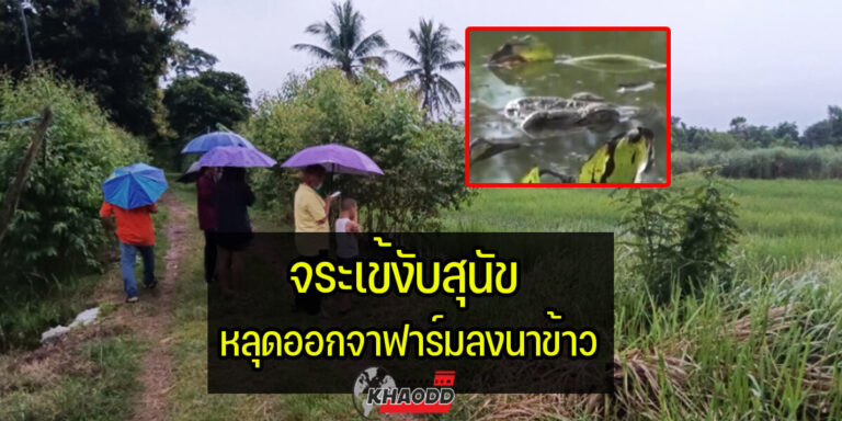ชาวบ้านหวาดกลัว จระเข้งับสุนัข วอนให้เจ้าหน้าที่มาจับ มันซ่อนตัวในนาข้าว