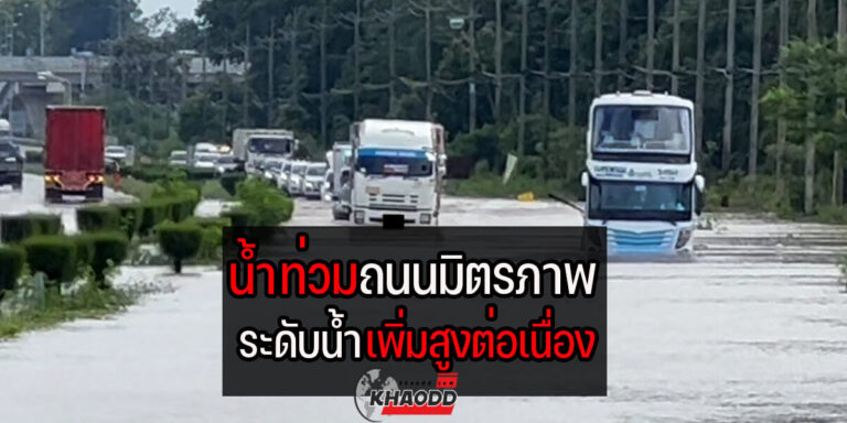 น้ำท่วมถนนมิตรภาพ รถเสียกลางทางหลายคัน รถทัวร์ไปไม่ได้ ปริมาณน้ำสูง 1 เมตร