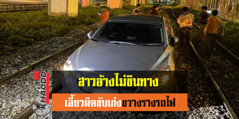 สาวอ้างไม่ชินทาง ขับเก๋งจนยางแตกพุ่งใส่รางรถไฟ เลี้ยวผิดชีวิตเปลี่ยน!