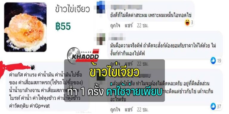 รายละเอียดครบ! 55 บาท ค่าอะไรบ้าง? ข้าวไข่เจียว ต้นทุนและวัตถุดิบค่าเสื่อมอุปกรณ์