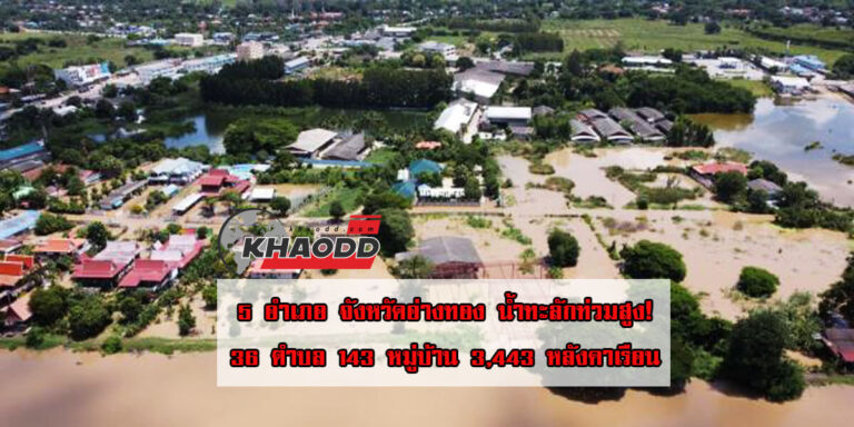 ระทึก! 5 อำเภอ จังหวัดอ่างทอง กระแสน้ำพังพนังกั้นน้ำริมเจ้าพระยา ไหลทะลักเข้าท่วมหมู่บ้านจนขยายเป็นวงกว้าง