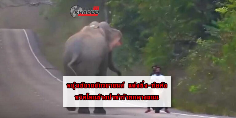 ระทึก !! หนุ่มขับรถจักรยายนต์ แต่งซิ่ง-ท่อดัง หวิดโดนช้างป่าทำร้ายกลางถนน