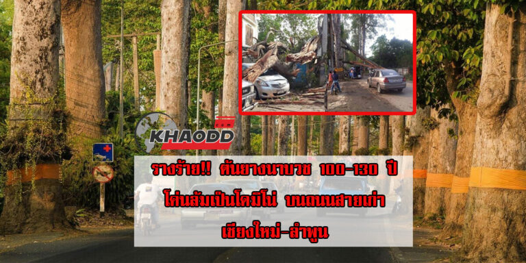 รางร้ายบอกเหตุ!! พายุพัดแรงลงเฉพาะถนนเชียงใหม่-ลำพูนสายเก่า ต้นยางนาบวช 100-130 ปี ล้ม 14 ต้น พาดพ่วงเสาไฟฟ้าล้มอีก 40 ต้น