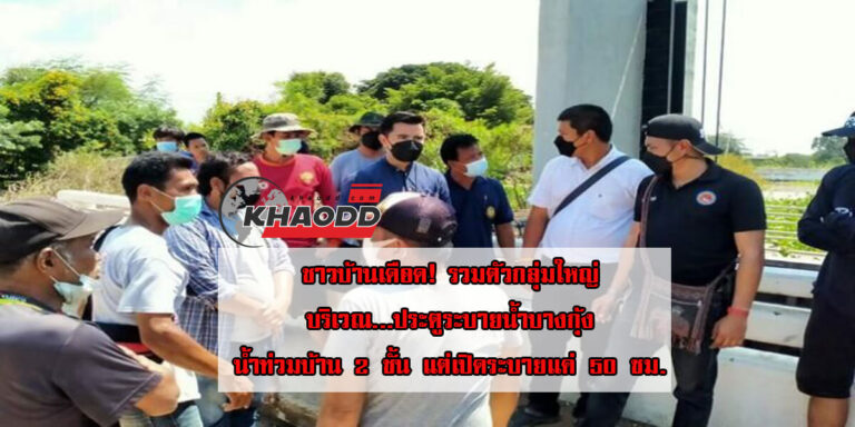 เดือด!! ชาวบ้านรวมตัว ประตูระบายน้ำบางกุ้ง หลังน้ำท่วมบ้าน 2 ชั้น แต่พบประตูน้ำเปิดระบายแค่ 50 ซม. พร้อมกันนั้นบริเวณแก้มลิงยังแห้งเมื่อหน้าแล้ง