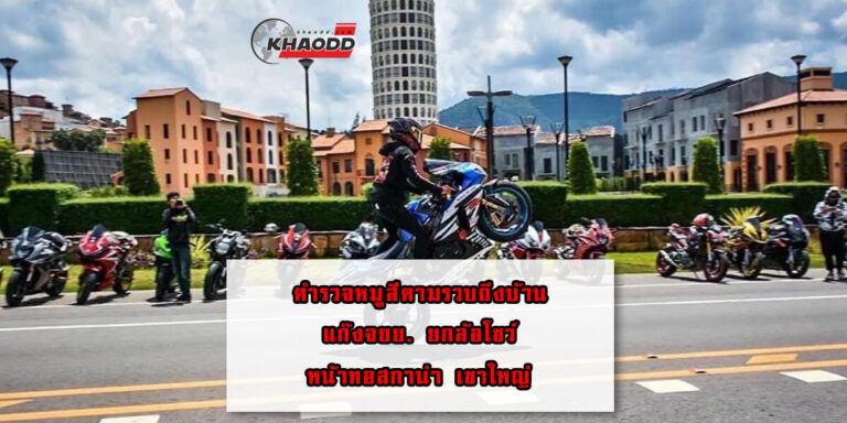 จุดจบ !! ตำรวจหมูสีตามรวบถึงบ้าน แก๊งจยย. ยกล้อโชว์ หน้าทอสกาน่า เขาใหญ่
