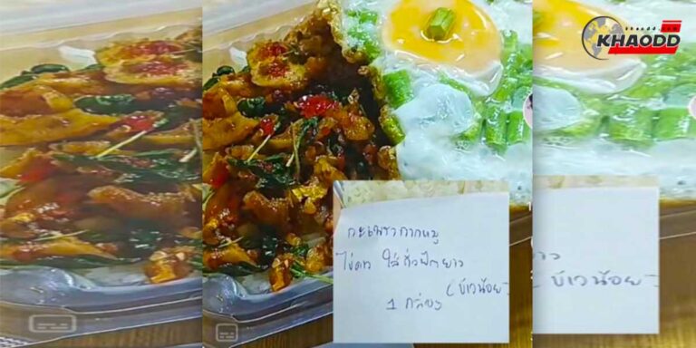 เมื่อลูกค้าสั่งกะเพรากากหมู “ไข่ดาว ใส่ถั่วฝักยาว” เชๆก็จัดให้ตามคำขอจุกๆ