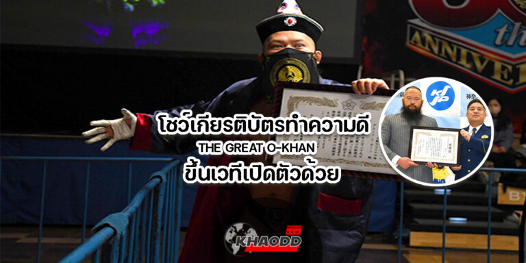 นักมวยปล้ำญี่ปุ่น The Great O-Khan โชว์เกียรติบัตรทำความดีเดินขึ้นเวทีตอนเปิดตัวด้วยว่ะฮร่า!! หลังได้รับมันมาจากการช่วยเหลือเด็กหญิงที่ถูกลวนลาม