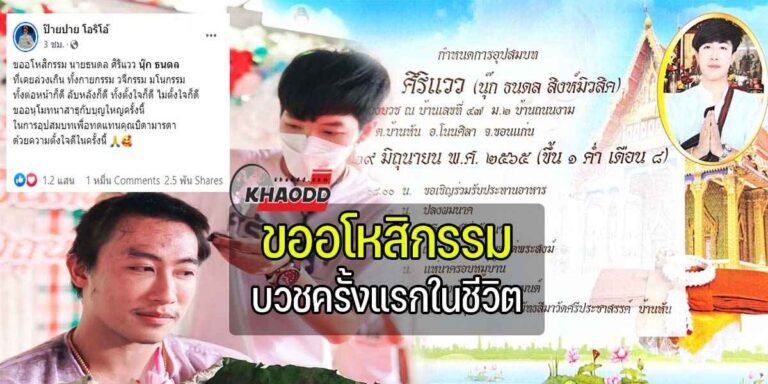 “ป๊ายปาย” ขออโหสิกรรม “นุ๊ก ธนดล” ล่าสุดเข้าพิธีอุปสมบทตามประเพณี-ขอนแก่น