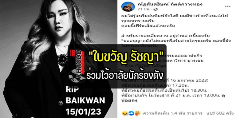 แฟนคลับอาลัย! ปิดตำนานเจ้าของเพลงดัง “ใบขวัญ รัชญา”
