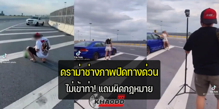 ดราม่าช่างภาพปิดทางด่วน เพื่อถ่ายรูปนางแบบคู่รถ ทั้งยังมีกระดกเบียร์