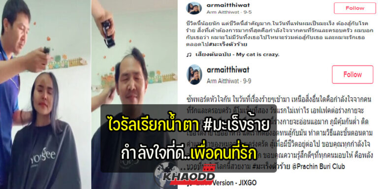 ไวรัลเรียกน้ำตา โกนผมเป็นเพื่อน “คนรัก” เราไม่ทิ้งกัน มะเร็งร้ายเล่นงานแล้ว