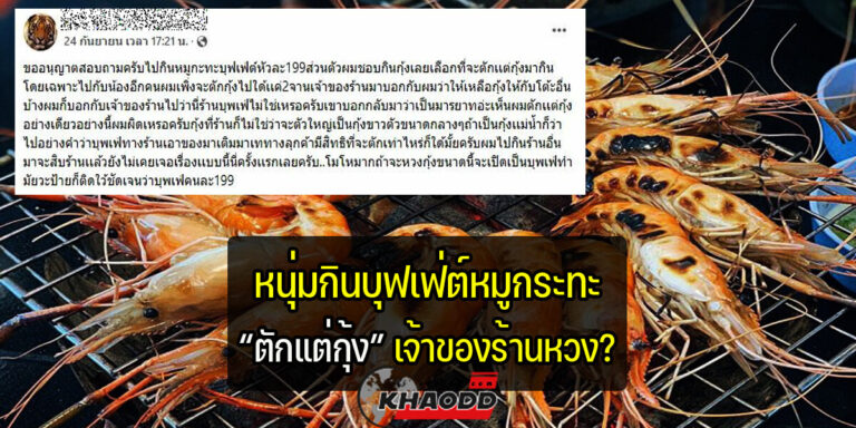 มีเรื่องให้ถกอีกครั้ง หนุ่มกินบุฟเฟ่ต์หมูกระทะ “ตักแต่กุ้ง” เจ้าของร้านลั่นว่า “ไม่มีมารยาท”