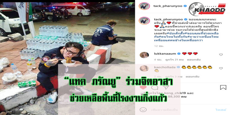 “แทค ภรัณยู” ร่วมเป็นจิตอาสา ช่วยเหลือพื้นที่โรงงานกิ่งแก้ว