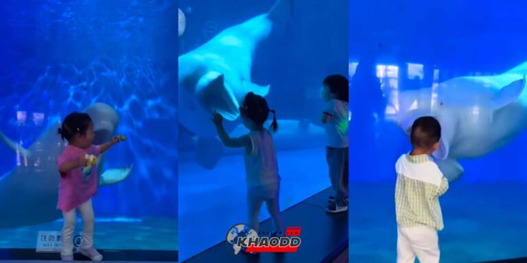 วาฬเบลูกา “แกล้ง” เด็กน้อยจนร้องไห้ ก่อนจะกลับมาดูว่าน้องร้องไห้ทำไมฮร่าๆ
