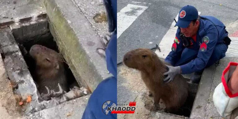 ชาวเน็ตขำไม่ไหว! เมื่อเจอภาพเจ้า “คาปิบารา” ติดท่อ จนเจ้าหน้าที่ต้องไปช่วย