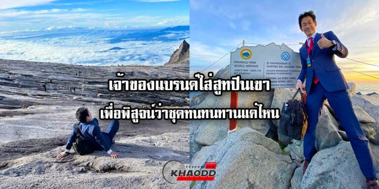 ลงทุนมาก!! เจ้าของแบรนด์ใส่สูทปีนจนถึงยอดเขาก็ไม่ขาด แถมยังคุยธุรกิจต่อได้