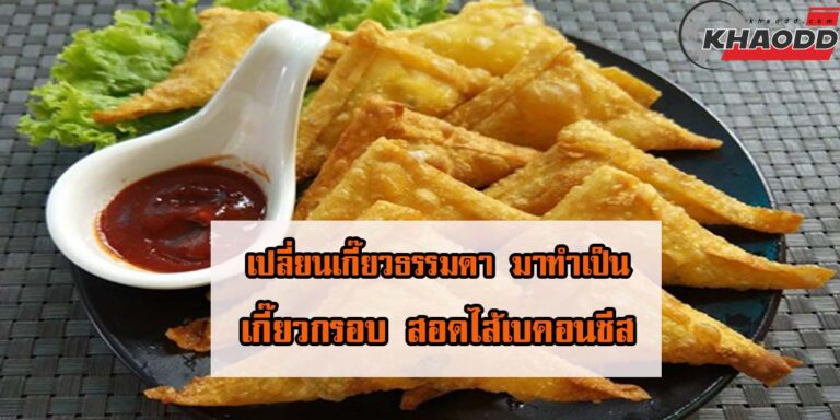 เกี๊ยวกรอบ สอดไส้เบคอนชีส อร่อยกรุบๆ สไตร์เจ้าเด็กอ้วน
