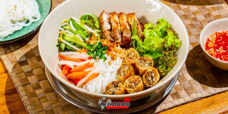 แจกสูตร “ขนมจีนหน้าหมูย่างและเปาะเปี๊ยะทอด” bún thịt nướng chả giò