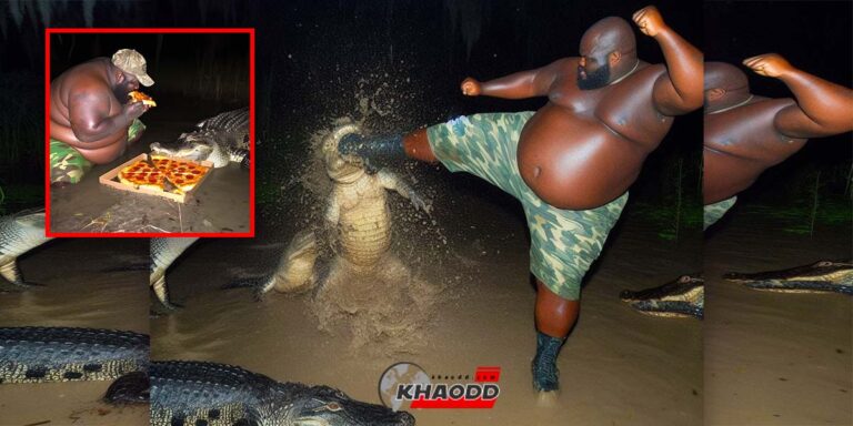 ไวรัลภาพ “ชายอ้วนดำเตะปากจระเข้” AI สร้างหรือของจริง?