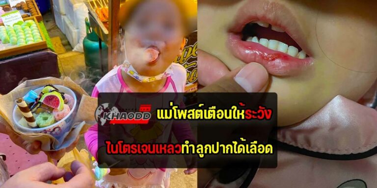 แม่โพสต์เตือนให้ระวัง “ไนโตรเจนเหลว” หลังทำลูกปากพองจนได้เลือด