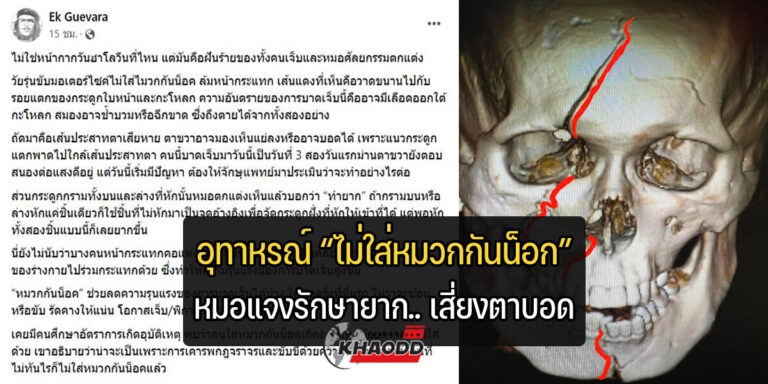 อุทาหรณ์ “ไม่ใส่หมวกกันน็อก” หมอเปิดภาพคนไข้สาว กะโหลกร้าวยาว ลั่นงานยาก!