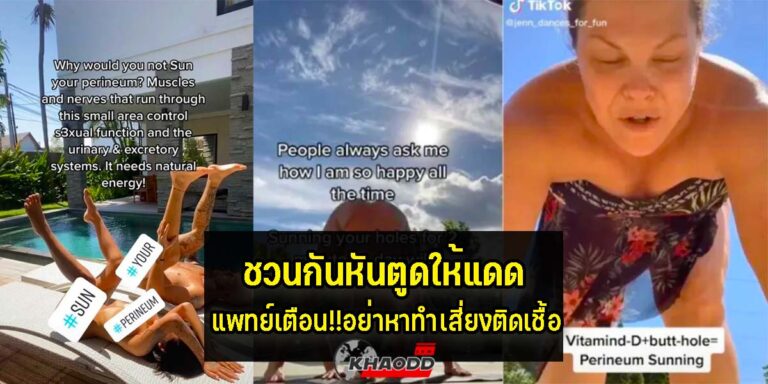 ชวนกันหันตูดให้แดด เทรนด์ใหม่มาแรงของสาวอเมริกันในต่างประเทศ ที่ชวนกันทำใน TikTok ข่าวต่างประเทศแพทย์เตือน!!อย่าทำ เพราะมันเสี่ยงต่อการติดเชื้อ การอาบแดดและการทำสมาธิให้ได้ประโยชน์นั้นสามารถทำได้ด้วยวิธีต่างๆ ซึ่งการหันตูดใส่แดดไม่ได้มีประโยชน์อะไรอย่าทำ