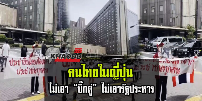 ไม่เอารัฐประหาร! คนไทยในญี่ปุ่น ชูป้าขับไล่ “บิ๊กตู่” หน้าที่พักในโตเกียว