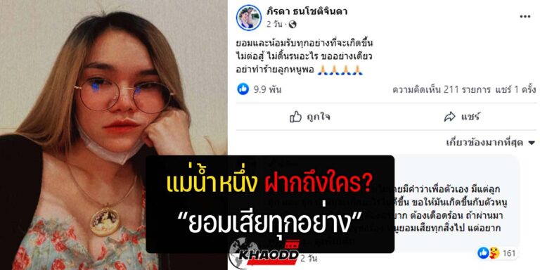 แม่น้ำหนึ่ง ภิรดา โพสต์แบบนี้! “ยอมเสียทุกอย่าง” สิ่งเดียวที่ขอ อยากทำร้ายลูก!