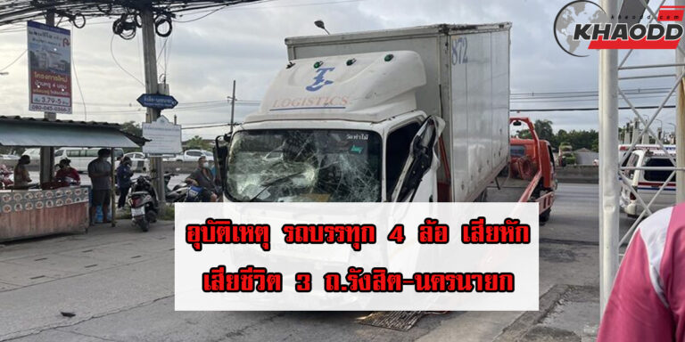 รถบรรทุก 4 ล้อ หักหลบรถพ่วง ชนรถมอเตอร์ไซค์ จนเป็นเหตุให้มีผู้เสียชีวิตและบาดเจ็บอีกหลายราย ถนนรังสิต-นครนายก ปทุมธานี สภ.ประตูน้ำจุฬาลงกรณ์ โดย พ.ต.ท.สวัสดิ์ คงแก้ว