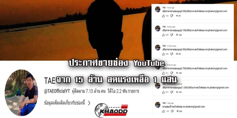 ด่วน! เผื่อมีคนสนใจ ประกาศขายช่อง YouTube ผู้ติดตาม 7 ล้าน หนัก 15 ล. ลดเหลือ 1แสน