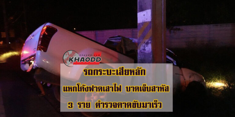 รถกระบะเสียหลัก แหกโค้งฟาดเสาไฟ บาดเจ็บสาหัส 3 ราย ตำรวจคาดขับมาเร็ว